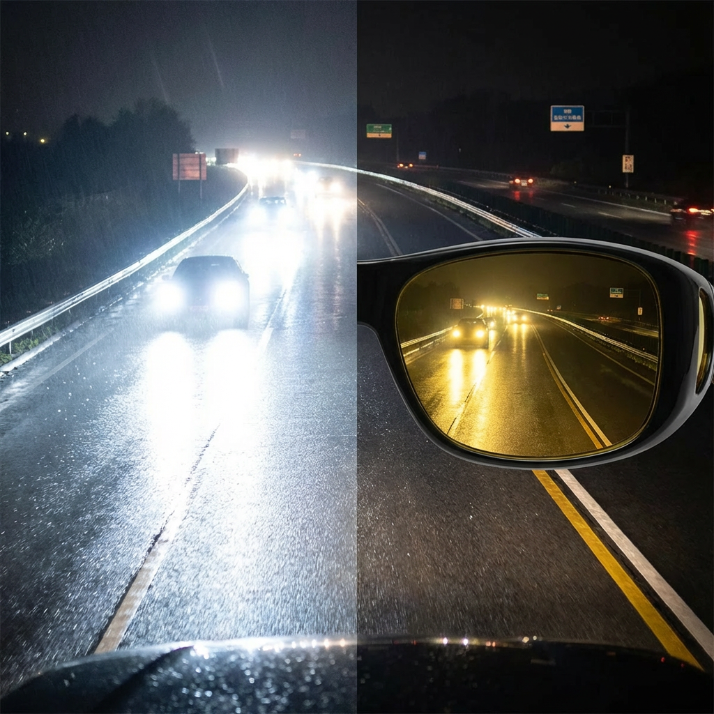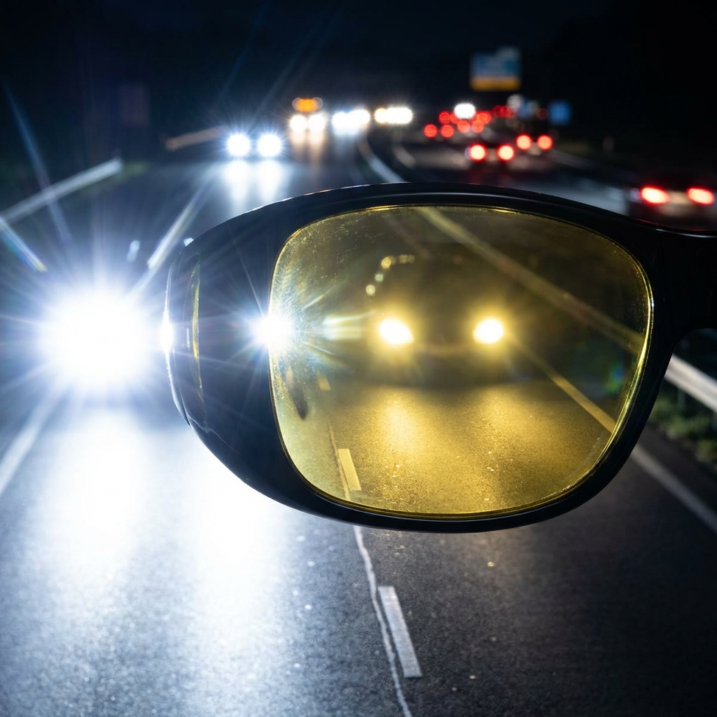Les phares modernes provoquent un fort éblouissement et réduisent la visibilité la nuit. Les lunettes Clear Night filtrent ces lumières agressives pour améliorer le confort visuel sur la route.